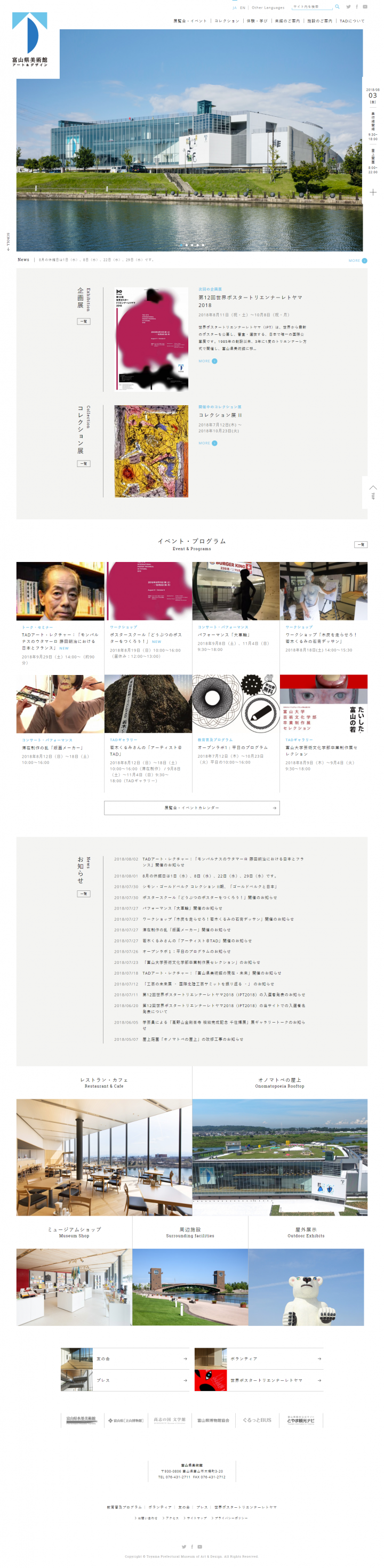TOP 実績紹介 富山県美術館(2017年) WEBサイト 富山県美術館(2017年) PREV日本橋とやま館(2016年) NEXTべつばら富山 企画 イベント・展示場 商品開発・ブランディング グラフィックデザイン WEBサイト コンベンション 国内会議・全国大会 国際会議 通訳・翻訳 通訳